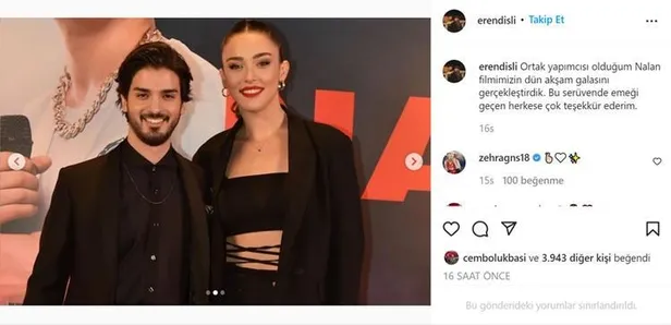 Filmin yapımcısı Eren Dişli de geceye aşk yaşadıkları konuşulan VakıfBank'ın milli voleybolcusu Zehra Güneş ile birlikte katılarak iddiaları doğruladı.