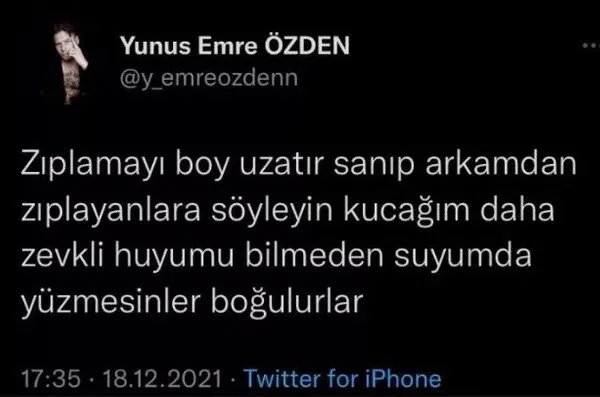 Özden'in tepki çeken tweetleri şu şekildeydi: ''Zıplamayı boy uzatır sanıp arkamdan zıplayanlara söyleyin, kucağım daha zevkli. Huyumu bilmeden suyumda yüzmesinler, boğulurlar.''