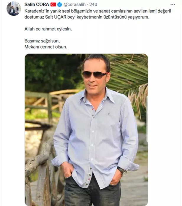 AK Parti Trabzon Milletvekili Salih Cora ise paylaşımında "Karadeniz'in yanık sesi bölgemizin ve sanat camiasının sevilen ismi değerli dostumuz Sait Uçar beyi kaybetmenin üzüntüsünü yaşıyorum" ifadelerini kullandı.