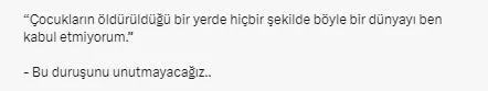 "Çocukların öldürüldüğü bir yerde hiçbir şekilde böyle bir dünyayı ben kabul etmiyorum."