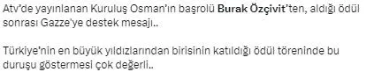 "Atv'de yayınlanan Kuruluş Osman'ın başrolü Burak Özçivit'ten, aldığı ödül sonrası Gazze'ye destek mesajı..