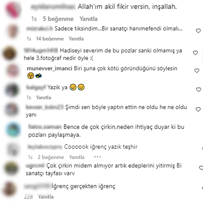 Sosyal medya kullanıcıları, Hadise'ye "Biri şuna çok kötü göründüğünü söylesin", "İğrenç gerçekten iğrenç" yorumlarında bulundu.