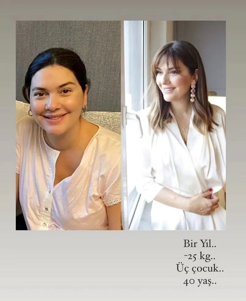 2022 yılında yaptığı bir paylaşımda ise "Bir yıl... -25 kilo... Üç çocuk... 40 yaş..." notunu düştü.