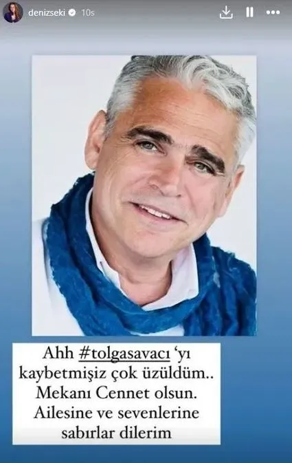 "Ahh Tolga Savacı'yı kaybetmişiz çok üzüldüm. Mekanı cennet olsun. Ailesine ve sevenlerine sabır dilerim"