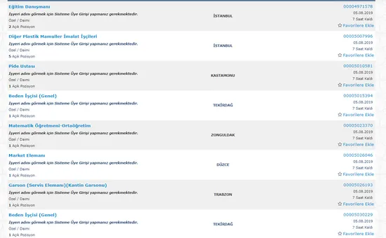 Özel şirketler ve kurumların birçoğu sigorta teşviki nedeniyle personel ihtiyaçlarını İŞKUR üzerinden gerçekleştirmektedir. Bu bağlamda İŞKUR'da 05 Ağustos itibari ile özel kurum ve şirketlere ait 42 bin 795 farklı iş ilanı bulunmaktadır. Yayınlanan iş ilanlarına göre, Türkiye genelinde vasıflı vasıfsız binlerce personel alımı yapılacak.