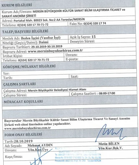7 belediye ilanı bugün yayımlandı. İŞKUR ve DPB 'de yayımlanan ilanlarda en az ilkokul mezunu adaylar arasından personel alımı yapılacağına yer verildi. Büro memuru, teknisyen, mühendis, işçi, itfaiye eri kadrolarına yapılan alımda detaylar haberimizde.