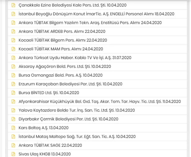 İŞKUR 'da yayımlanan personel alımı ilanları şu şekilde: