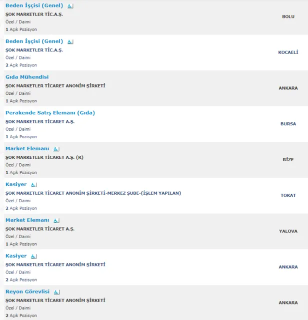 BİM, ŞOK ve A101 İlanlar ve kadrolar İŞKUR adresinde yayınlanmaya başladı!