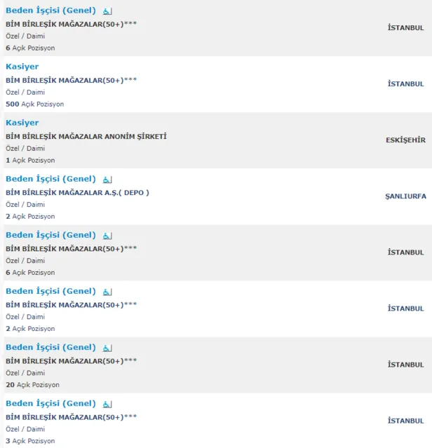 BİM, A101 ve ŞOK resmi internet siteleri üzerinden alım yapılacak pozisyonları ve başvuru ekranını paylaşıyor. İşte personel alımı yapılacak boş kadrolar;