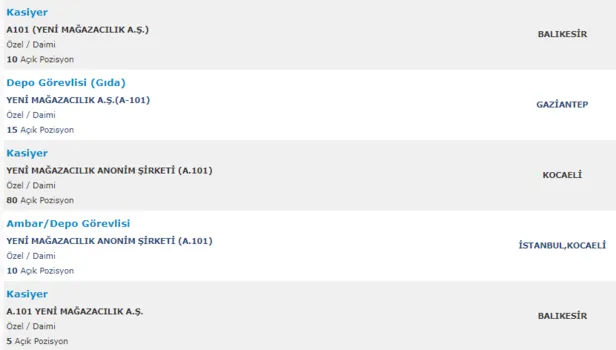 A101 personel alımında kadrolar şu şekilde:
