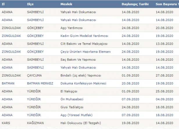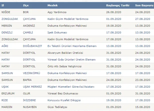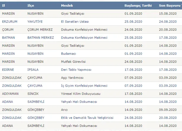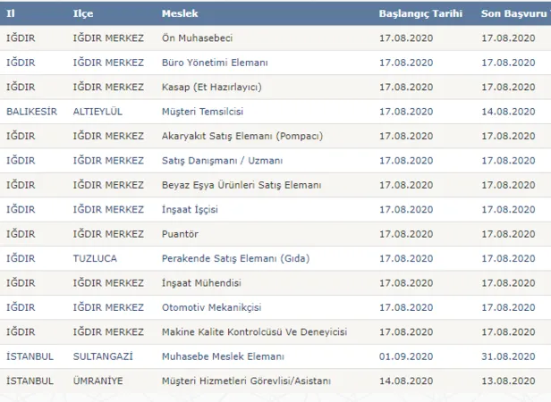 İşbaşı eğitim ve mesleki eğitim kursları kapsamında yapılan personel alımlarında güncel personel alımı ilanları şu şekilde: