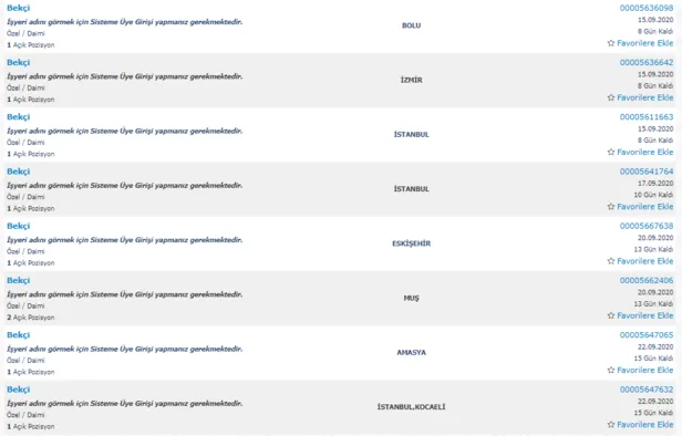 Türkiye iş Kurumu tarafından yeni ilan yayımlandı. Yayımlanan ilana göre özel sektörde farklı illerde istihdam edilmek üzere ve en az ilköğretim mezunu olmak şartı ile bekçi alımları yapılıyor. Ancak ilana göre en az ilkokul mezunu olmanız gerekmektedir. Aynı zamanda başvuru yapacak adayların herhangi bir rahatsızlığının veya hastalığının olmaması gerekiyor.