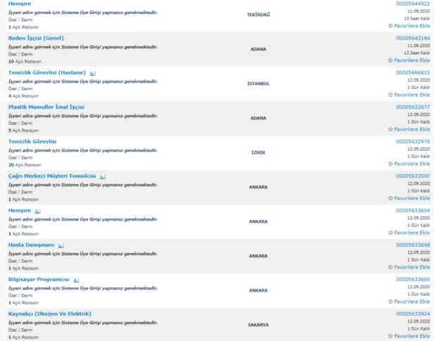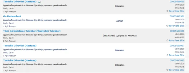 Eylül ayının 2. haftasında İŞKUR üzerinden çeşitli hastanelere işçi alımı yapılıyor
