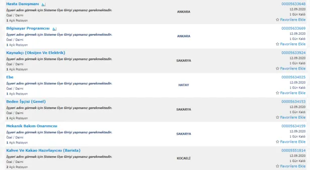 Açılan ekranda iş ilanlarına bakabilmek için ilk adımda iş arayan ya da iş veren olma durumunun belirtilmesi gerekir. Sonrasında aranılan özel bir pozisyon, nitelik, meslek, beceri veya firma adı varsa o yazılmalıdır. Eğer genel geçer bütün ilanları görüntülemek istiyorsanız; bu kısmı boş bırakabilirsiniz. Sonrasında aynı sayfa üzerindeki çalışma yeri, ülke, il, ilçe, ilan no, ilan tarihi, meslek, öğrenim durumu, iş yeri türü, engel durumu, vardiya seçenekleri, iş yeri ünvanı gibi bilgiler girilerek "ara" sekmesine basmalısınız. Herhangi özel aradığınız bir ilan, iş yeri yoksa; ilan no, ilan tarihi ve iş yeri ünvanı sekmelerini boş bırakabilirsiniz.