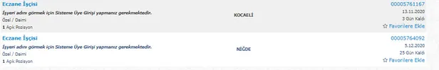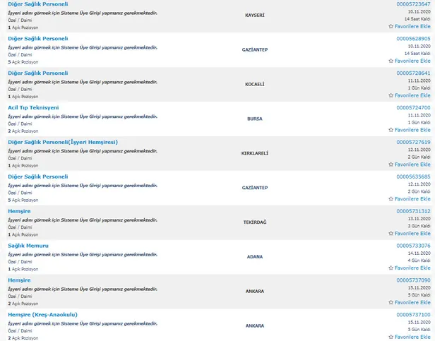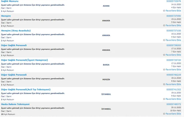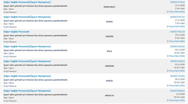 İŞKUR üzerinden özel hastaneler bünyesine yapılan personel alımları şu şekilde: