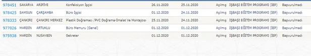 İŞKUR tarafından en az ilkokul mezunu işbaşı eğitim programları ile personel alımı yapılıyor. Konfeksiyon İşçisi, Büro İşçisi, Plastik Doğramacı /PVC Doğrama-İmalat Ve Montajcısı, Büro Memuru, Sekreter kadrolarında alımlar yapılıyor. İstihdam garantili meslek eğitim kursları içerisinde en az yüzde ellisi, yüzde yirmi günden daha az olmayacak şekilde meslek süresi kadar istihdam etme hakkına sahip olacaktır.