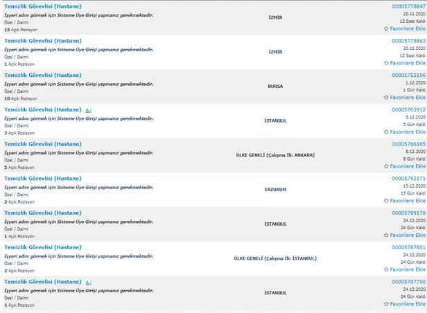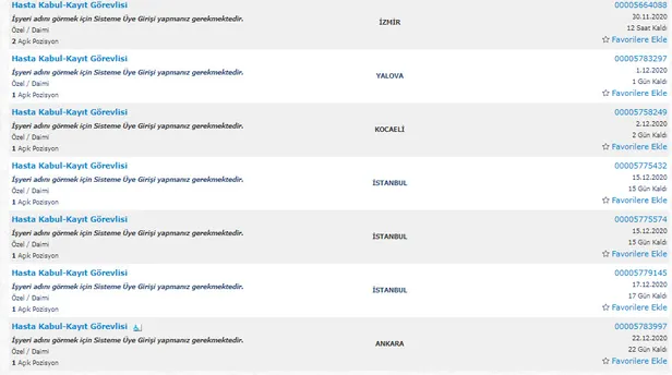 İstanbul, Ankara ve İzmir başta olmak üzere 19 şehirde bulunan hastanelerde çalışacak personellerde aranan başvuru şartları aktarıldı. Hastane personel alım ilanına başvuru yapacak adayların E-devlet şifresi ile İŞKUR üzerinden oluşturdukları iş arayan girişi yapılması sonrasında başvuruların yapılacağı belirtildi.