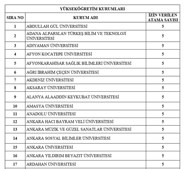 İŞTE ATAMA YAPILABİLECEK KADROLAR