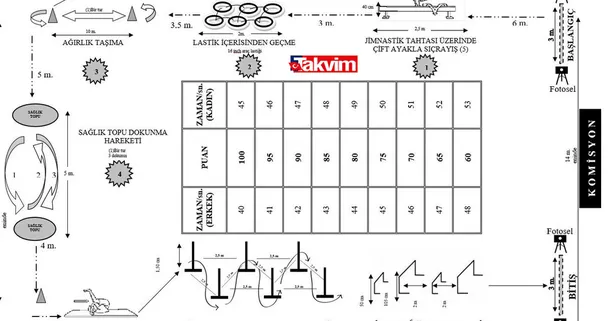 • Sağlık topuna dokunma hareketinde aday önce en uzaktaki topa dokunarak sonra geçerken dokunmadığı ilk topa dokunacak ve sonra ilk dokunduğu topa tekrar dokunarak istasyonu tamamlayacaktır. Bu istasyonu bu şekilde yapmayan, önce birinci topa dokunan sonra ikinci topa dokunarak diğer istasyona geçen adayın ikinci topa dokunması bir dokunuş sayılacaktır. İlk topa dokunması sayılmayacak ve bu şekilde iki top arasındaki mesafeyi kat etmeyecek şekilde diğer istasyona geçen adayın bitirme süresine ceza karşılığı olarak 8 (sekiz) saniye ilave edilecektir.
