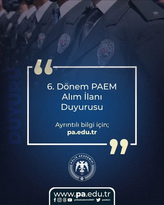 Başvuruların tamamlanmasının ardından adaylar, sınav sürecine alınır. Bu süreçte adayların fiziki yeterlilik sınavlarına katılması gerekebilir. Kazanan adaylar, Polis Akademisi Eğitim Merkezi'nde eğitimlerine başlarlar. Eğitim süreci boyunca adaylar, polislik mesleğinin gerektirdiği bilgi, beceri ve disiplini kazanırlar. Polis Akademisi PAEM öğrenci alımları, polis teşkilatının nitelikli personel ihtiyacını karşılamak amacıyla düzenlenmektedir. Bu nedenle başvuru yapacak adayların, şartları eksiksiz olarak taşıdığından ve başvuru tarihlerini kaçırmadığından emin olmaları önemlidir. Polis Akademisi Başkanlığı, Polis Amirleri Eğitim Merkezi'ne (PAEM) öğrenci alımı duyurdu. 6. dönem için toplam 500 öğrenci alınacak, bunların 400'ü erkek ve 100'ü kadın olacak. Başvuru yapmak isteyen adaylar, PAEM öğrenci alımı için gereken tarihleri ve şartları merak ediyor. İşte PAEM öğrenci alımı başvuru tarihi ve şartları...