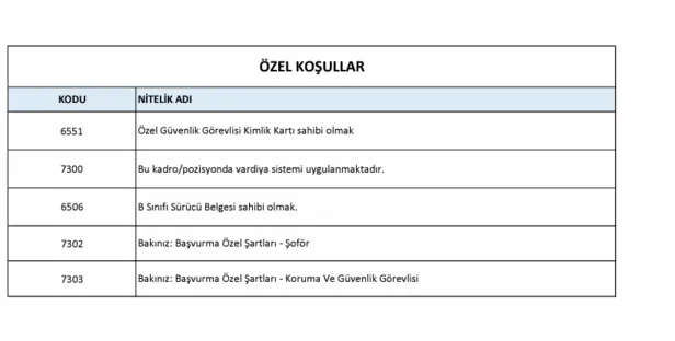 2001, 2117, 6506, 7300, 7302 nitelik kodu ne demek? SGK lise mezunu memur alımı: Temizlik, aşçı, bulaşıkçı, şoför, teknisyen alımı başvuru şartları nedir?