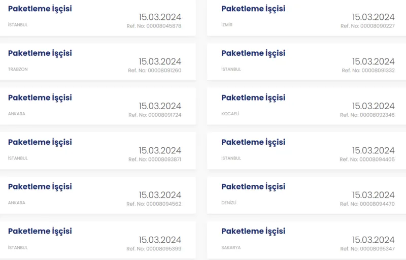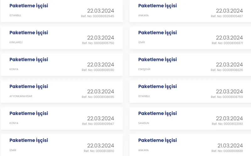 Farklı şehirlerde 20'den fazla paketleme işçisi pozisyonu için başvuru yapabilirsiniz.