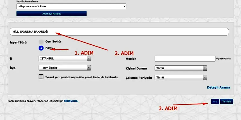 5. ADIM: "Ara" butonuna tıkladığınızda karşınıza çıkan ilanlar arasından ilgili pozisyon için başvurunuzu tamamlayabilirsiniz.