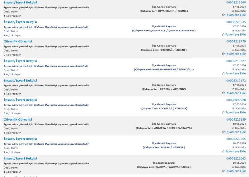 İnşaat/İşyeri Bekçisi Alımı İçin Tıklayınız