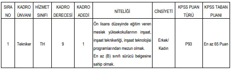 Atabağı Belediyesi tarafından yapılan açıklamaya göre, boş kadrolar için atamalar, Mahalli İdareler İlk Defa Atanacaklar Yönetmeliği'ne göre yapılacak. Adaylardan inşaat sektöründe öğrenim görmüş olmaları, yani inşaat, inşaat teknikerliği veya inşaat teknolojisi dallarından birinden mezun olmaları beklenmektedir.