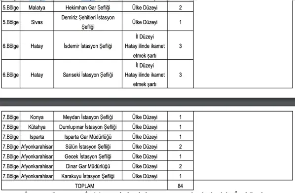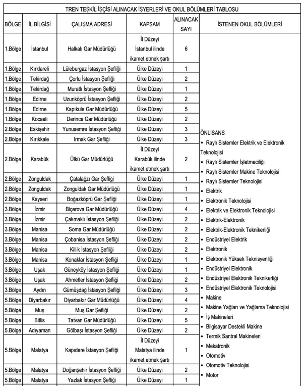 TCDD aşağıdaki 25 ilde personel alımı yapacaktır: