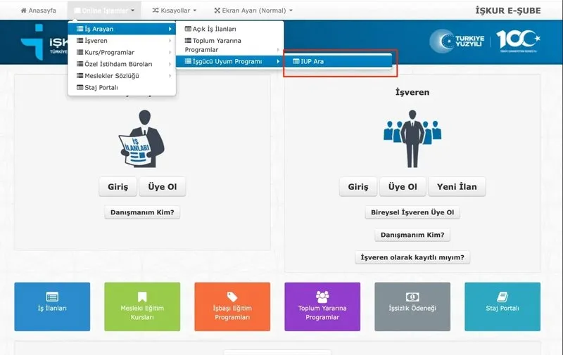İŞKUR İUP Başvuru Sayfası: https://esube.iskur.gov.tr/Istihdam/IstIupArama.aspx