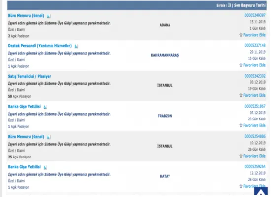 Bu ekranda İŞYERİ UNVANI yazan yere BANK yazın ve ARA butonuna tıklayın. İlanlar aşağıdaki gibi sıralanacaktır.