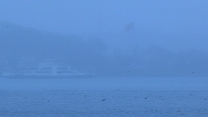 İstanbul Boğazı’nı kaplayan yoğun sis, köprüleri ve çevresini adeta görünmez hale getirdi.