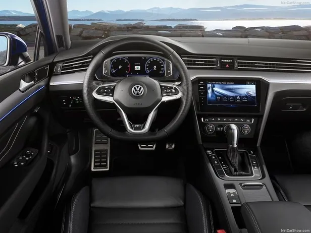İçeriye baktığımızda da makyaj öncesinden çok farklı olmayan bir düzenle karşılaşıyoruz. Dijital gösterge paneli grafikleri güncellenen Passat'da bilgi eğlence sisteminin de üçüncü jenerasyonu kullanılmış. 6.5, 8.0 ve 9.2" boyutlu ekranlar ile alınabilen multimedyada çevrim içi servisler, navigasyon ve hareket kontrolü gibi özellikler mevcut.