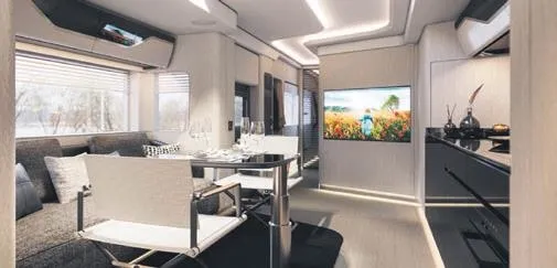 Pandemide gözde olan karavanda taleple birlikte ürün yelpazesi de artıyor. Dembell Motorhomes adlı Alman şirketi, karavanı lüks bir eve dönüştürdü. 2 milyon dolarlık karavan, üç akslı Mercedes şasenin yanı sıra Azimut yatlarının içini tasarlayan ekibin hazırladığı dizaynıyla göz dolduruyor.