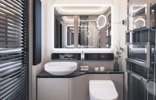Ana yatak odasında büyük boy yatak ve 55 inç TV bulunurken, bu oda dışarı doğru büyüyebiliyor. Karavanın önünde şoför koltuğunun yanı sıra masaj fonksiyonu olan 3 koltuk daha yer alırken, kapandığında bir yatak daha ortaya çıkıyor.