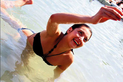 Senem Kuyucuoğlu, önceki gün Marrakech'te deniz keyfi yaptı. Sahilde seyyar midyeciyi gören güzel manken, hiç üşenmeden yüzerek satıcının yanına gitti. Kuyucuoğlu, denizden çıkmadan midyeleri afiyetle yedi.