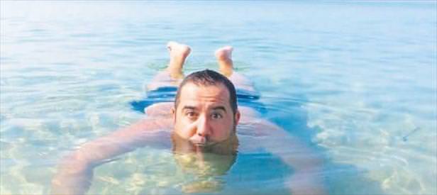 Ata Demirer'in hem tatili hem de esprili instagram paylaşımları sürüyor. Ünlü komedyen, önceki gün Bozcaada'daki bir koya motosikletle gidip burada deniz keyfi yaptı.