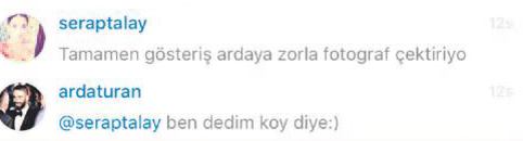 Gözde çift Aslıhan Doğan ile Arda Turan, aşklarını sosyal medyada gözler önüne sermeye devam ediyor. Sosyetik güzel, önceki akşam Barcelona'da gittikleri Da Greco isimli lüks mekandan fotoğraf paylaştı. Aslıhan Doğan'ın bu karesine bir takipçisi "Tamamen gösteriş. Arda'ya zorla fotoğraf çektiriyor" yazınca devreye Barcelonalı yıldız girdi. ARDA Turan, kadın takipçiye yanıt olarak "Ben dedim koy diye" yazdı. Daha önce de sevgilisine sosyal medyadan yapılan yorumlar karşısında siper olan yıldız futbolcu, bu tavrıyla yine gündem yarattı.