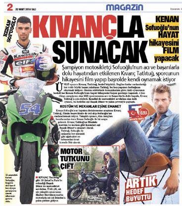 "Kendisi Türkiye'nin milli gururlarından birisidir. Ben de herkes gibi Kenan Sofuoğlu hayranıyım. Bu konuyu detaylı olarak ayaküstü konuşmak istemiyorum." Daha sonra BMW marka aracının direksiyon başına sakat ayağı ile geçen oyuncu, herkesin duruma şaşırması üzerine şu esprili açıklamayı yaptı: "Araba otomatik vites, benim sol ayağım sakat olduğu için tek ayak idare ediyorum."