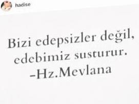 İpekçi'nin bu sözleri karşısında suskun kalan Hadise, önceki gün sosyal medyada Mevlana'nın bir sözünü paylaştı. Güzel popçu, paylaşımıyla da ünlü modacıya 'edepsiz' göndermesi yaptı.