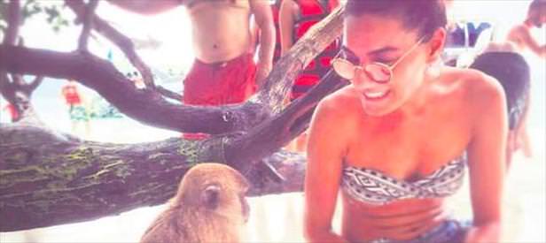 Hande Subaşı, turistlerin çantalarını alıp kaçan sevimli bir maymunla poz verdi. Ünlü manken bu pozunu "Dikkat çekip çantamı yürütmeye kalktı ama tabii ki kaptırmadım" mesajıyla yayınladı.