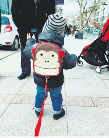 Didem Uzel, 'Aslancık'ın sırt çantasından uzanan sapı tutarak yürümesini sağlayıp oğlunun kaybolmasına karşı da önlemini aldı...