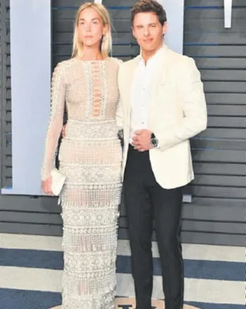 Raissa&Vanessa imzalı kıyafet giyen Edei, kırmızı halıda aktör aşkı James Marsden ile poz verdi.