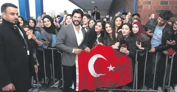 Almanya'daki gurbetçiler, Özçivit'i ellerindeki Türk bayraklarıyla karşıladı. Ünlü oyuncu, "Bu ilgi, yaptığımız işin en güzel karşılığı" dedi.