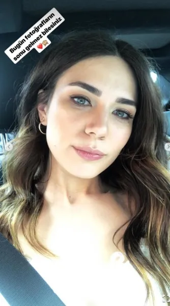 Buse Varol, fotoğraf çekimi için özel olarak hazırlattığı gelinliği giydi.