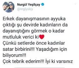 FOX TV'deki 'Yasak Elma'nın başrol oyuncusu Talat Bulut'un sette kostüm asistanını taciz ettiği iddiası ünlü kadınları ayağa kaldırdı. Geçtiğimiz yıl Hollywood'da patlak veren taciz skandalının ardından pek çok yıldız, yapımcı Harvey Weinstein aleyhine başlatılan kampanyalarla tacize 'dur' demişti. Bulut'un adının karıştığı olay sonrası Nurgül Yeşilçay da "Erkek dayanışmasının ayyuka çıktığı şu devirde kadınların da dayanıştığını görmek mutluluk verici. Çünkü setlerde önce kadınlar satar birbirini! Yaşadığım için biliyorum!" dedi. Birçok kadın oyuncu da "Susmayın, setlerdeki tacizi anlatın" çağrısı yaptı.