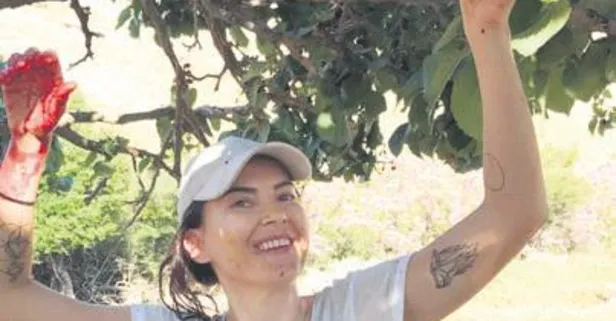 Oyuncu, karşısına çıkan ağaçtaki karadutları yemeye koyuldu. Elleri ve yüzü kıpkırmızı olan Dönmez, bu anı takipçileriyle de paylaştı.