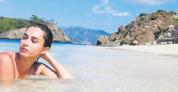 Hande Doğandemir'in denizde verdiği bu havalı poz, katalog çekimlerini anımsattı.