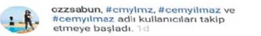 Eski aşkından haberdar olmak için 'cemyilmaz' etiketini takibe alan Sabuncu, kısa süre sonra takibi bıraktı.